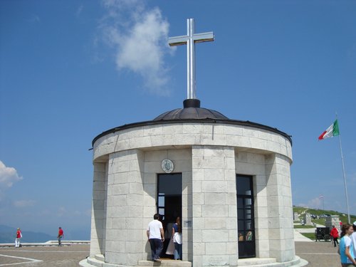 Arrivati alla cima, si percepisce subito un'atmosfera strana. Si prova una sensazione di dolore e stupore allo stesso tempo nel pensare a tutti i morti che ci sono stati per la patria. Migliaia di lapidi in ricordo dei nostri militari e di quelli austroungarici fanno riflettere su che cosa sia la guerra in tutto il suo significato più crudo. Una frase emblematica campeggia su vari cartelli piazzati prima dell'arrivo al sacrario: “LUOGO SACRO DELLA PATRIA -